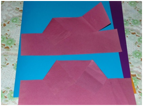4. Из листа бумаги, сложенного вдвое, вырезаем прямоугольник со сторонами 5 и 7 см для изготовления рубашки.