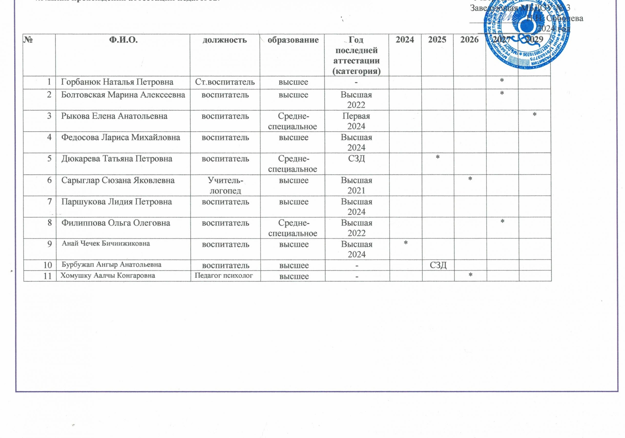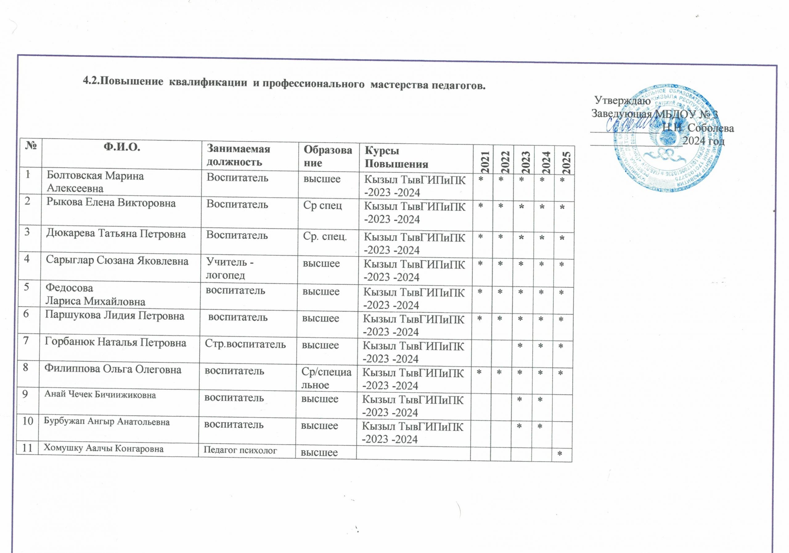 Персональный состав педагогических работников с указанием уровня образования